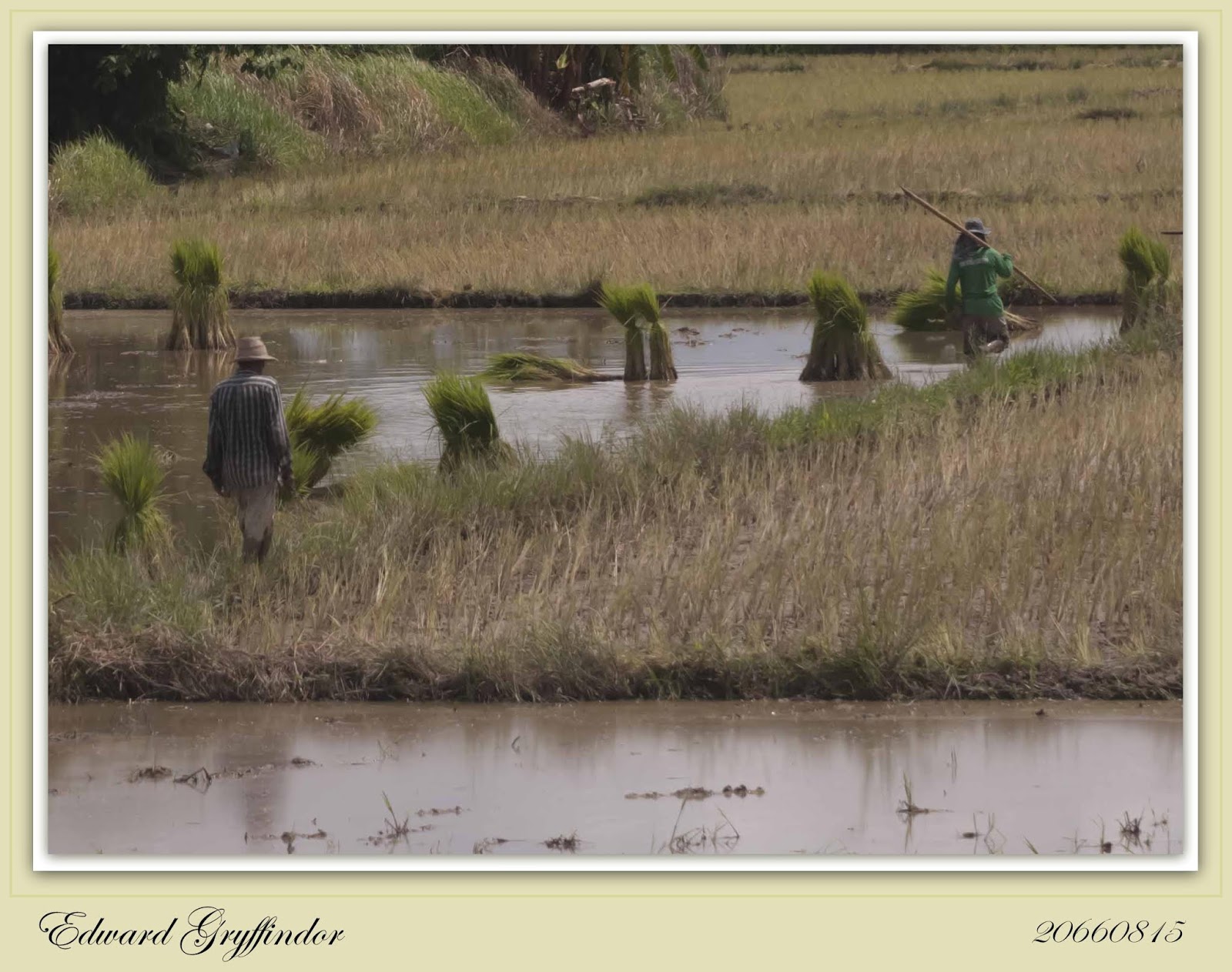 Duro trabajo el del arrocero. Parece mentira que sea un cereal con la de agua que necesita para su cultivo... o será que no todos los cereales sean de secano.Salu2